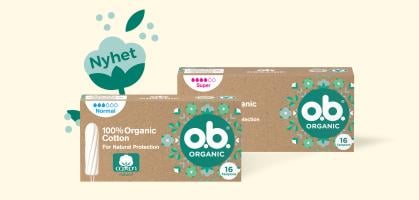Enten du er hjemme eller er på farten, gir våre o.b.® økologiske tamponger en sikker og naturlig beskyttelse slik at du kan være i bevegelse og føle deg trygg på at de unike buede rillene beskytter deg mot lekkasjer!